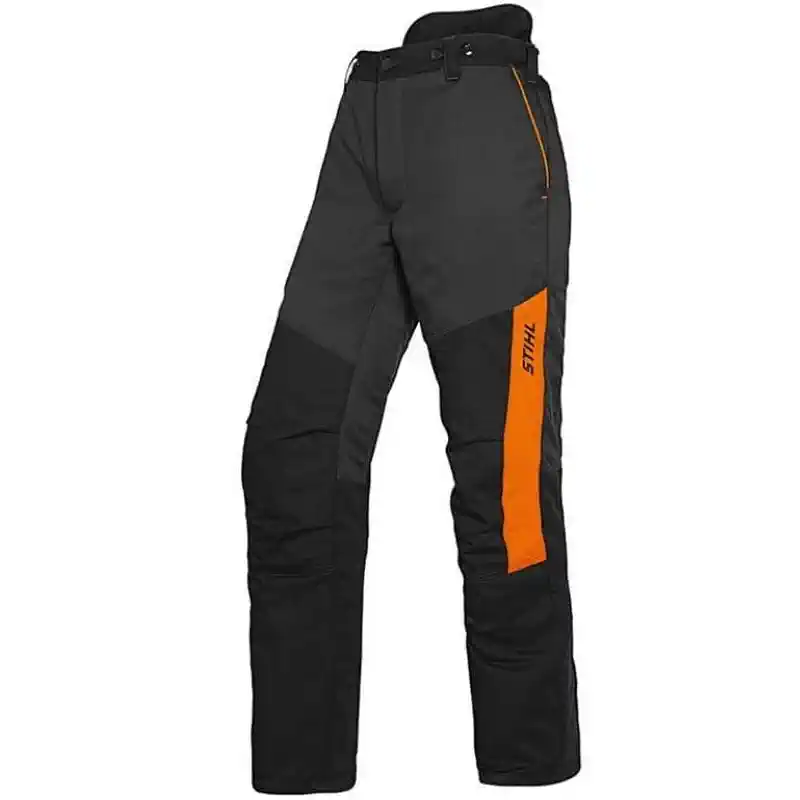 Sjekačke hlače STIHL izrađene su od izdržljivih i otpornijih materijala sa integrisanim zaštitnim slojem protiv posjekotina, koji pri kontaktu s lancem motorne pile usporava ili zaustavlja lanac. Dizajnirane su za dugotrajan rad u zahtjevnim terenskim uslovima, uz optimalnu kombinaciju sigurnosti, udobnosti i pokretljivosti. Ergonomski kroj, ojačanja na izloženim dijelovima i ventilacioni elementi doprinose funkcionalnosti i dugotrajnosti proizvoda.